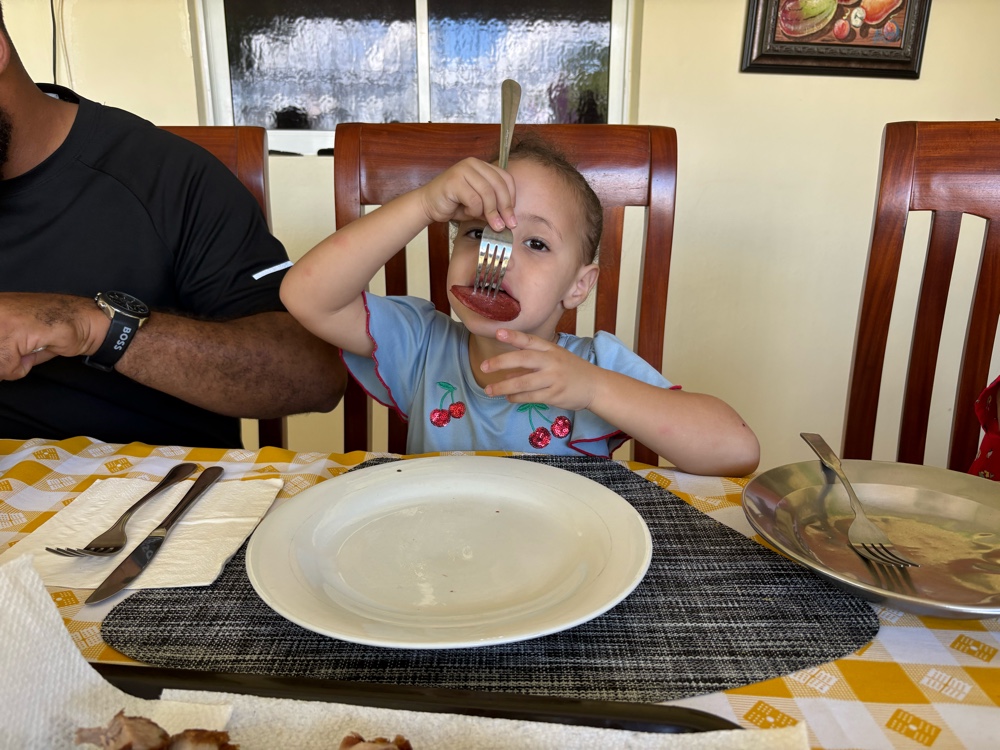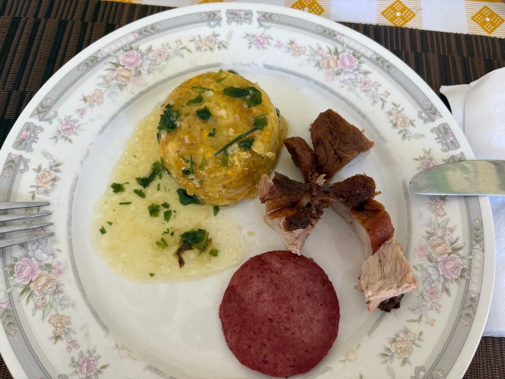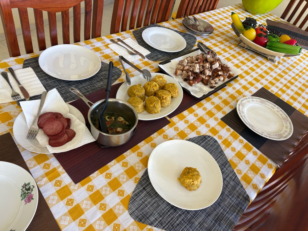 At about 11:00am we gathered at the in-laws house for a very Dominican meal — mofongo and chicharones.