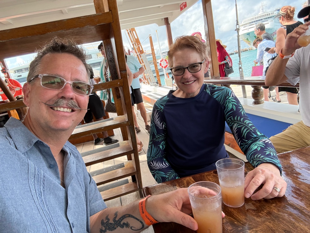 We docked in Philipsburg, St. Maarten at 9:00am today. We pre-booked a snorkeling excursion that included lunch and more. It was probably one of the best excursions we’ve ever done. It included snorkeling, lunch and booze, a cruise to the famous Maho Beach where the planes land overhead, and music and dancing. We had a blast!