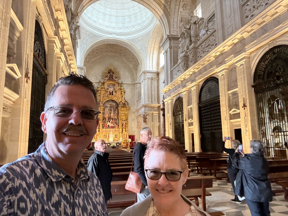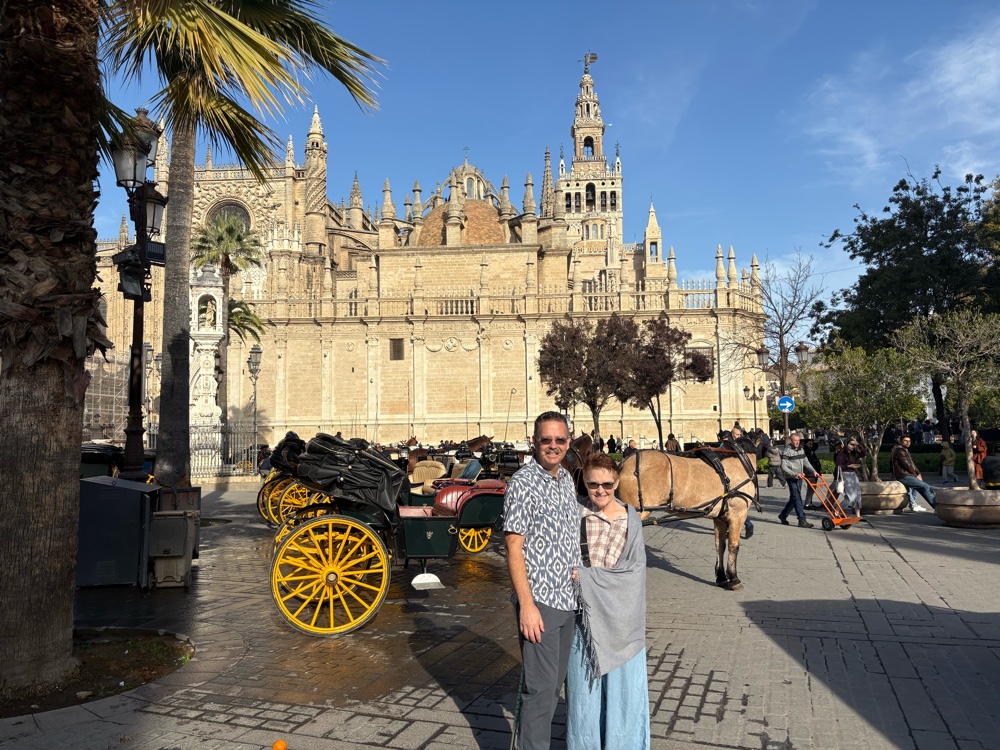 We docked in Cádiz, Spain this morning at 7:00am. And we were awake! We have also been to Cadiz on a previous cruise, it’s a vey nice port town. But we had our sights set on Sevilla (Seville in English). We had planned to take the train but when we got to the station just 10 minute walk from the ship, we found out that the next train would be at 2:00pm. That wouldn’t give us enough time. So, we opted to hire a taxi to take us there and back. We wanted to save money with the train, but we really didn’t want to miss Sevilla this time. So, we decided to hire a taxi — it was more expensive, but Diego, our driver, was a wealth of information and great guide. And … he didn’t speak English, so we had fun practicing Spanish.