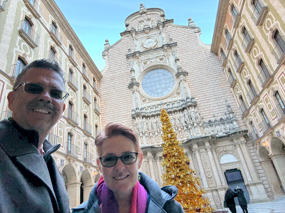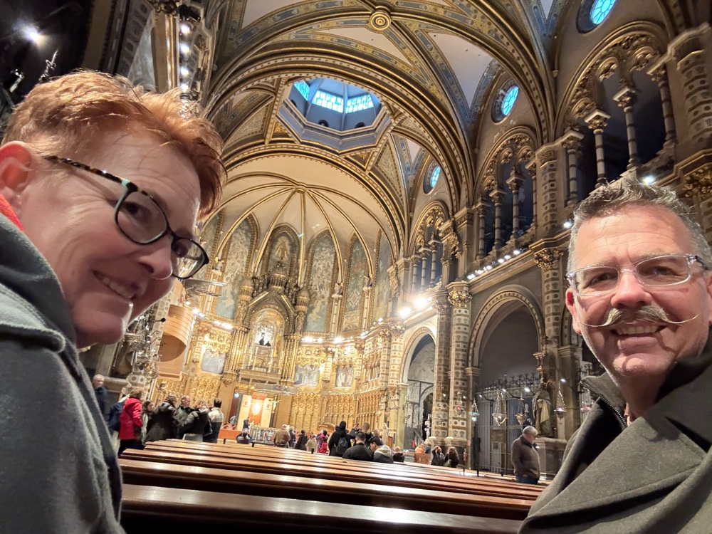 We had our first hiccup of the trip. We think that’s pretty good, and it was just a small hiccup. We decided to visit the monastery at Montserrat. It’s in the foothills north of Barcelona. We took a train to a small town and were supposed to catch an aerial cable car, but we missed the stop. We got off at the next stop and waited about an hour to go back. No big deal. We hope this is the worst of our hiccups.