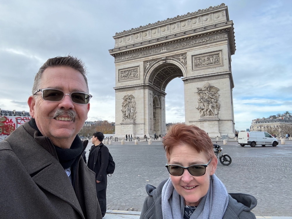 After a coffee and croissant on Rue Cler, we decided to walk to the Champs-Élysées and stroll toward the Arc de Triomphe. After the requisite photo, we hopped on the Metro and headed to the area near Notre-Dame. For lunch, we chose more classic French dishes: croque monsieur and steak au poivre.