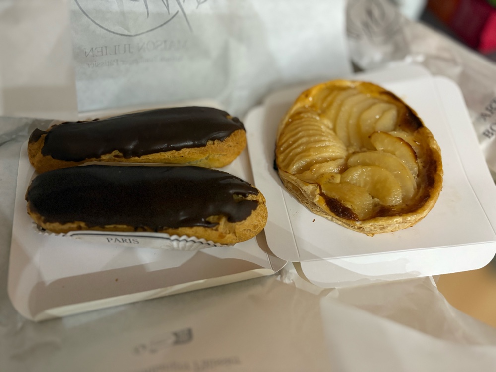 We picked up a few pastries on Rue Cler on our way home and had cheese and dessert while researching what we might do tomorrow and Thursday morning.